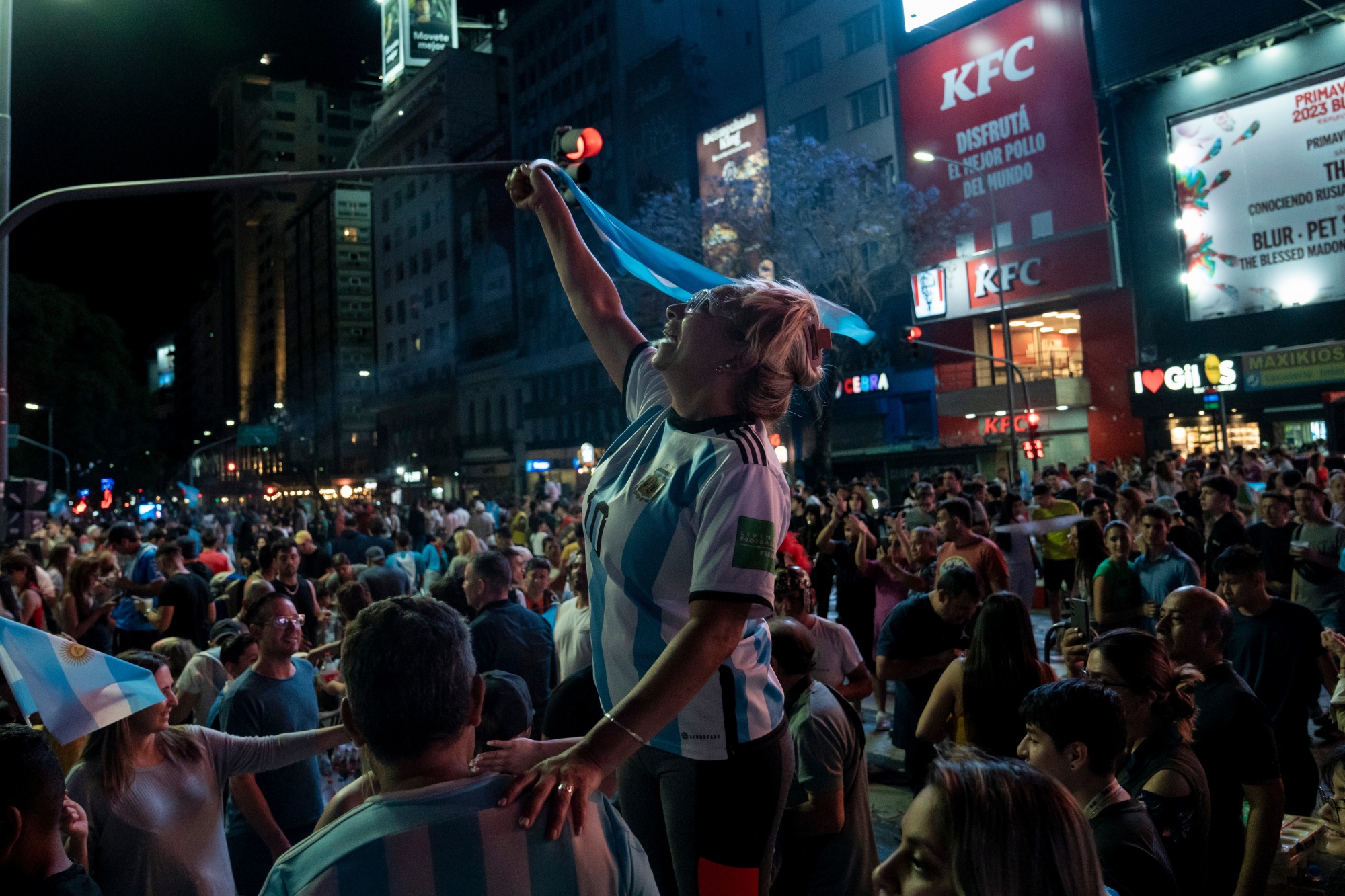 哈维尔·米莱在布宜诺斯艾利斯奥贝利斯克的选举之夜集会上的支持者,11月19日。