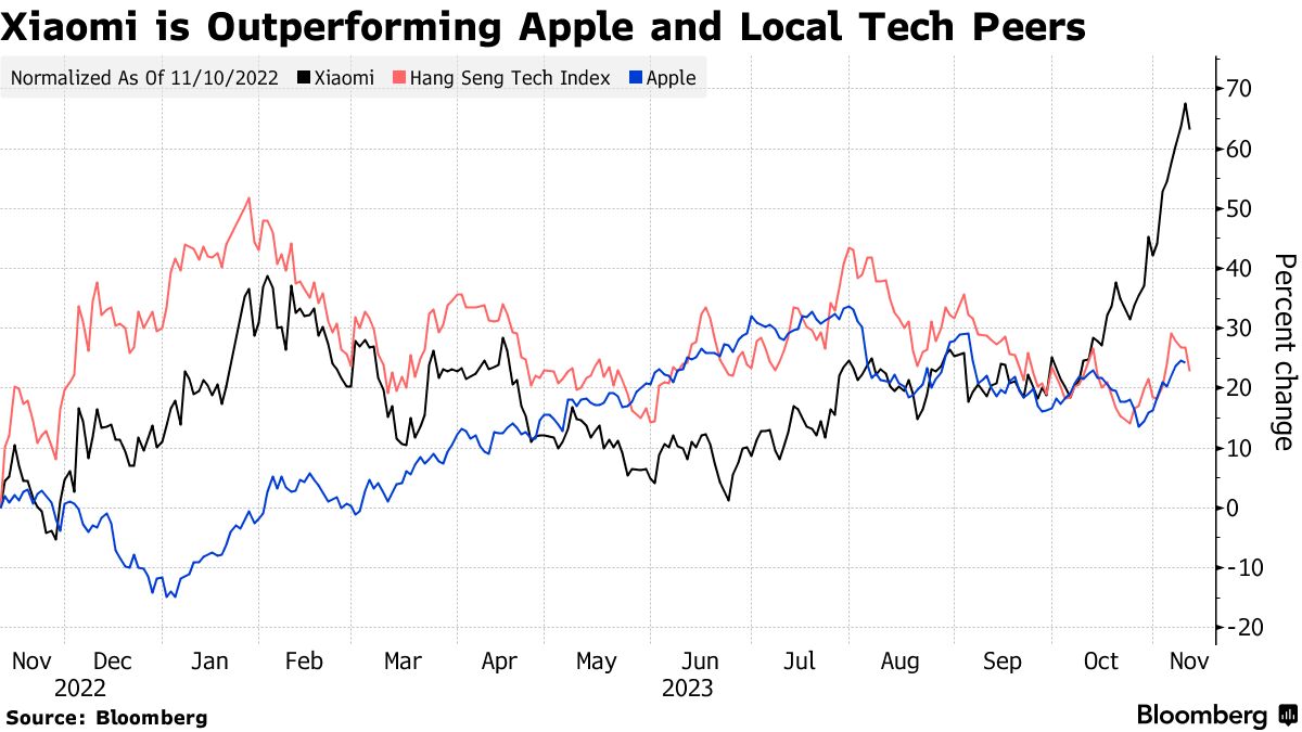 小米自2021年以来首次实现销售增长,市场出现波动-彭博社