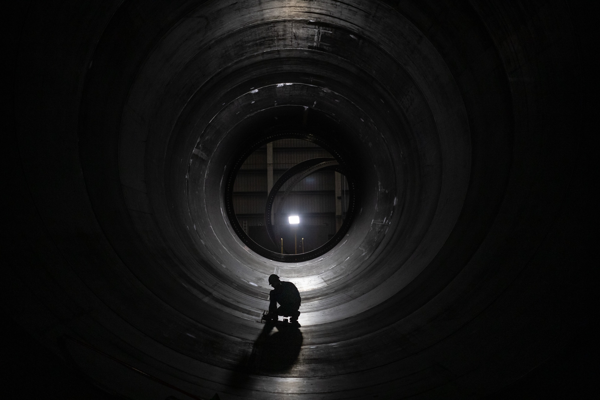 一名工人在葡萄牙阿维罗港的CS Wind ASM近海风电塔工厂内检查焊接缺陷。摄影师:Eduardo Leal/彭博社与此同时,欧盟委员会已经意识到了令人担忧的局面,并于上个月底发布了一项行动计划。该计划估计欧盟到2030年需要超过500吉瓦特的风电能源,以实现可再生能源目标,而2022年的目标是204吉瓦特,这是不可能实现的,“没有健康、可持续和有竞争力的风电供应链”。