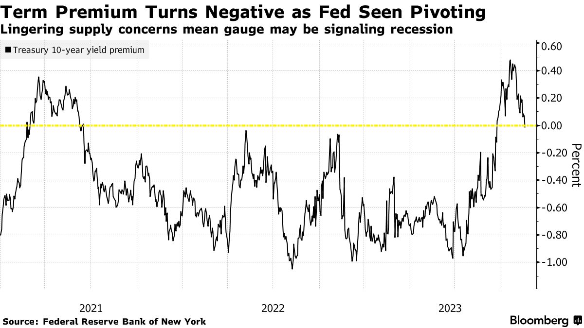 就在去年九月,随着投资者将美国收益率推高到十多年来的最高水平,这个指标首次攀升至零以上,因为拜登政府增加了债券销售并与议员就债务上限问题争执不休。