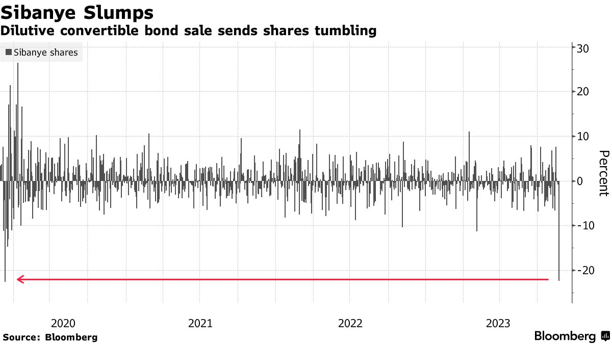 Sibanye(SSW SJ)股票因可转换债券销售而下跌-Bloomberg