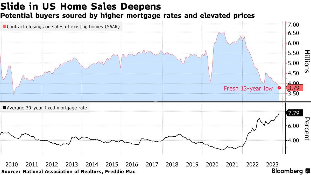 抵押贷款利率飙升和房价坚挺的组合一直在打击买家和卖家的积极性。然而,随着美联储接近收紧周期的尾声,抵押贷款利率的回落为房地产市场触底提供了一些希望。