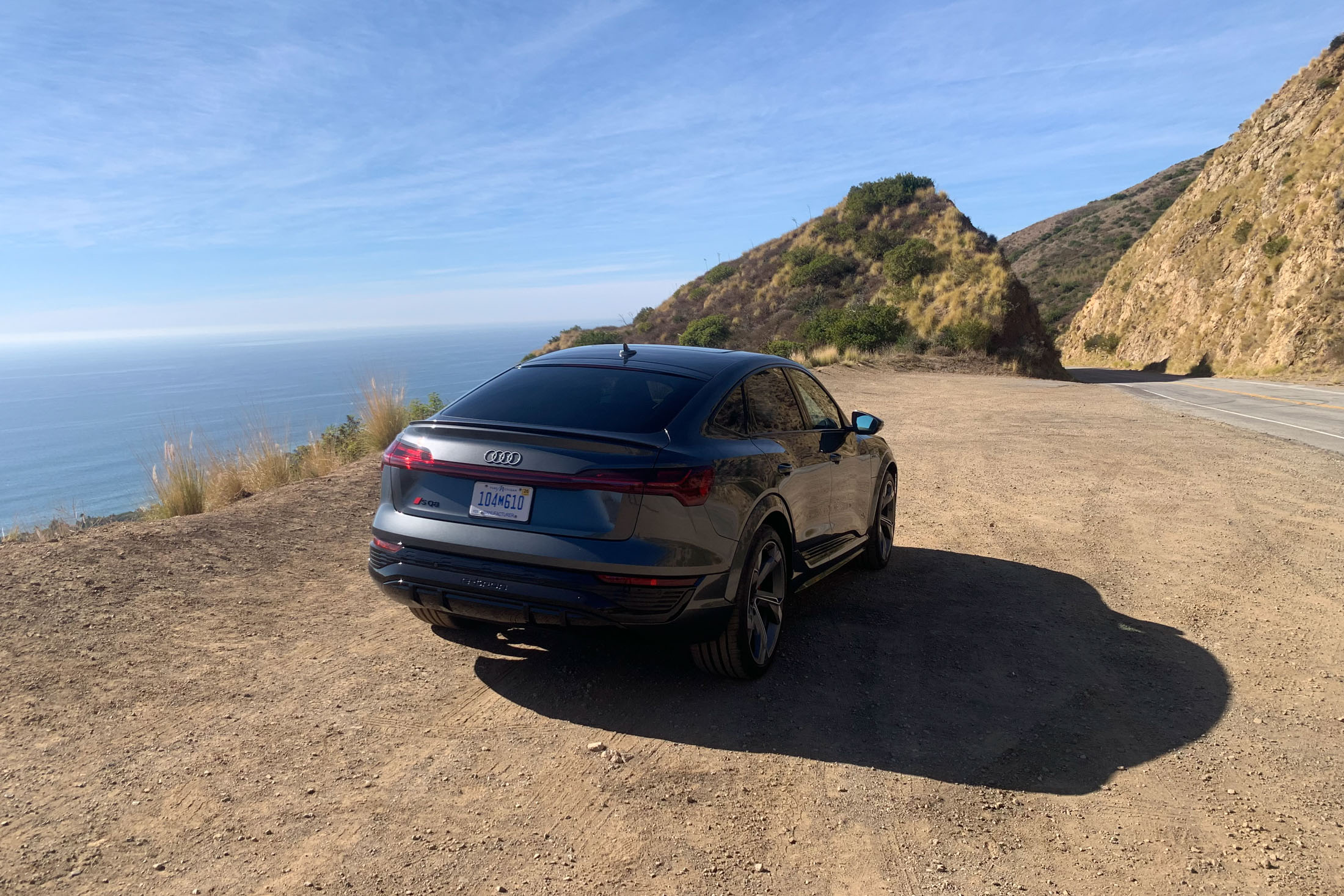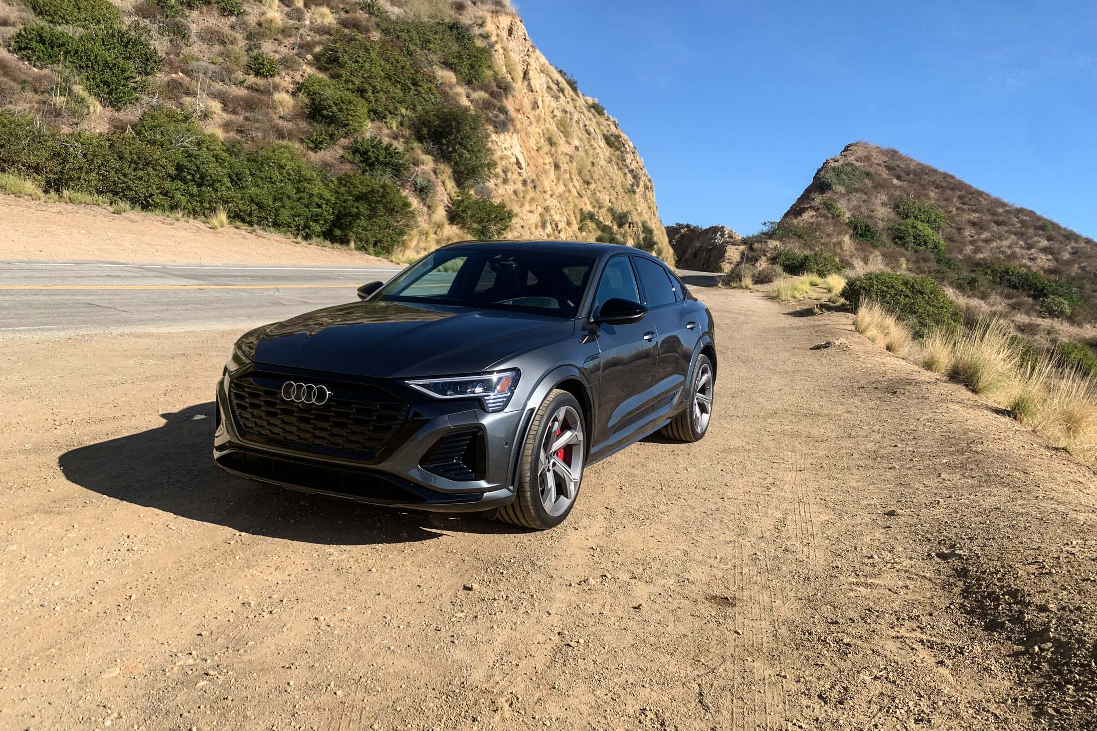 上周我驾驶SQ8 E-Tron从圣莫尼卡开了近70英里,穿过托潘加峡谷和穆荷兰公路周围的山丘,然后沿着马里布的太平洋海岸公路返回。虽然它不像那些令人向往的“RS”标志的奥迪那样运动,但它是奥迪最大的电动SUV的性能最高的车型。在我的测试中,我驾驶的是SQ8 E-Tron的Sportback版本,配备了Prestige装饰线,这种组合提供了标准的舒适配置,如电动软关闭门、数字矩阵设计LED大灯、后遮阳帘和停车辅助。测试车的价格为105,740美元。Sportback简单地意味着车顶线更倾斜,看起来更运动化,而基本版本相同。 (“运动化”应该带着一丝谨慎;毕竟,这依然是一辆购物车。)两个版本具有相同的性能规格和内饰设置。