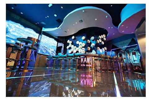 威尼斯人吹捧Kamu休息室是拉斯维加斯大道上的第一家高端卡拉OK俱乐部,提供40个隔音包间,配备先进软件,“无与伦比的音频和视觉体验。”