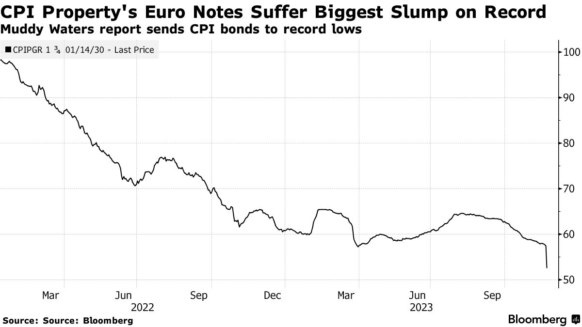 CPI Property Group SA的债券在这家东欧房地产公司成为做空机构Muddy Waters的最新目标后暴跌。
