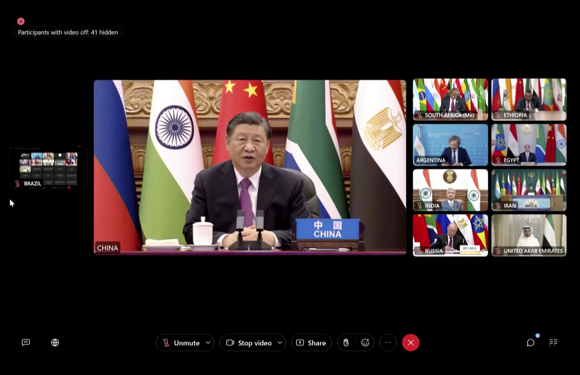 沙特阿拉伯、伊朗、埃及、埃塞俄比亚、阿根廷和阿拉伯联合酋长国的领导人和官员已受邀于明年加入金砖国家合作机制,并参加了这次在线峰会。