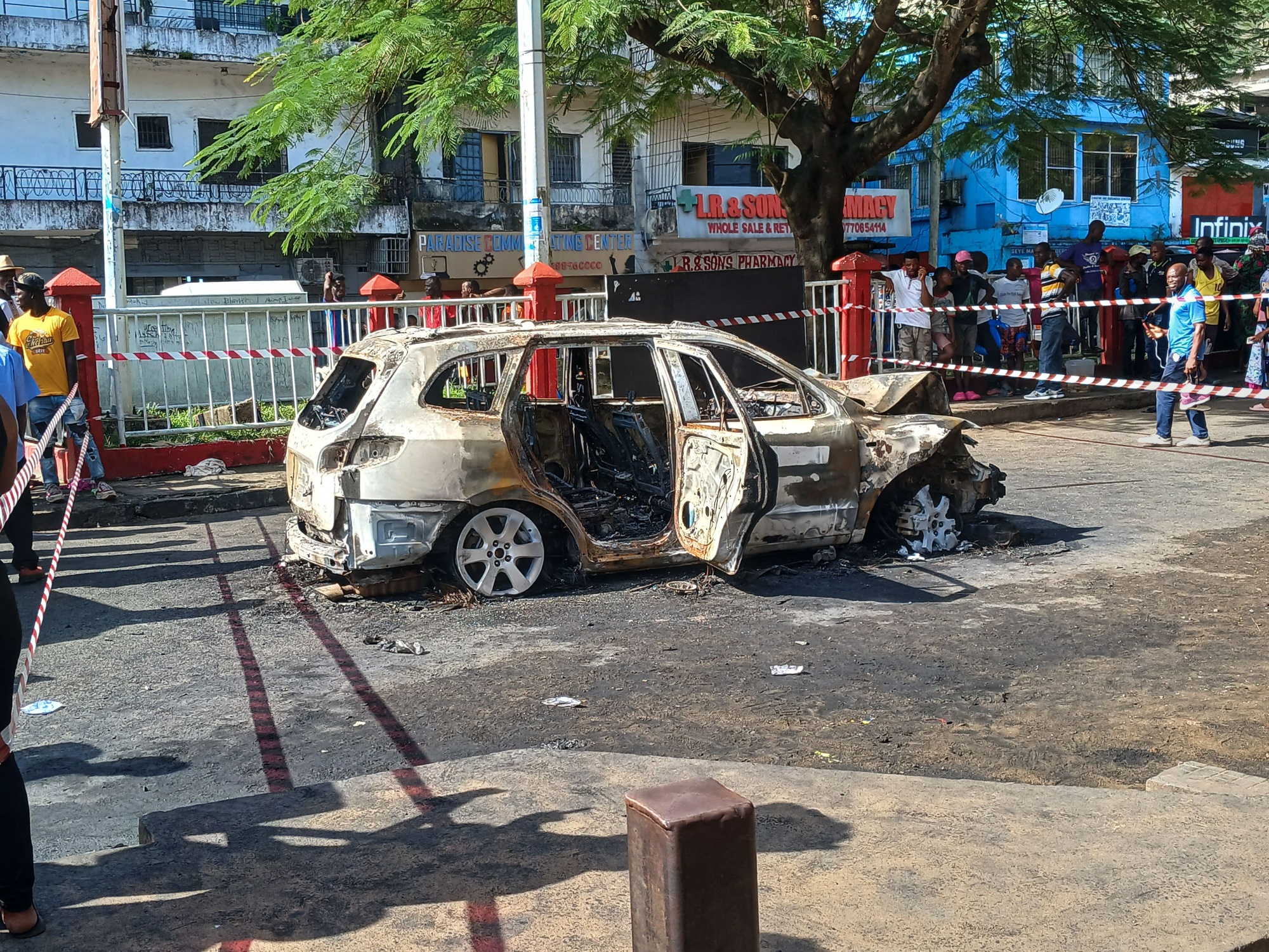 一辆撞向蒙罗维亚联合党(UP)支持者人群的车辆残骸。