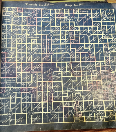 关于地图的事情是,你并不总是有每一个时间点的地图。你不能只是回头看,看看年复一年它是如何变化的。我们手头有的是来自1906年分配法案的这些地块图,它们是奥塞奇县法院的这些巨大的纸张,上面标有每块土地的奥塞奇人的名字。所以我们开始查看,好的,分配法案之后谁拥有了这块土地?然后你可以去查看这块土地的地块、乡镇和范围,这是一种常见的土地组织方式。你可以在另一本书中查找,看看这块土地随着时间是如何转让的。然后,如果你对这块土地为什么转让感兴趣,你可以翻开另一本书,有时会写明这块土地卖了多少钱,卖出的确切日期,或者有时是税收印花。