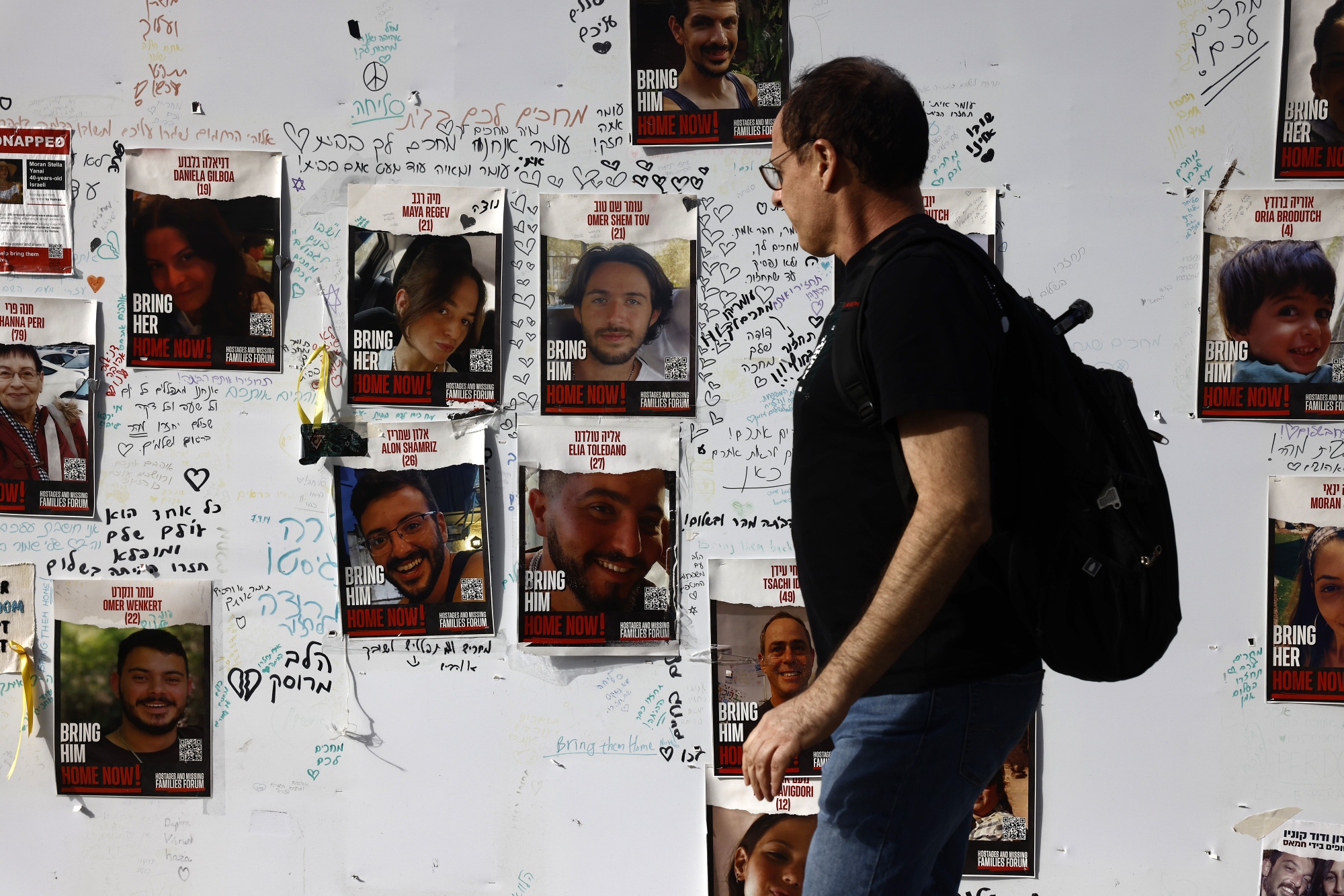 以色列人质的照片,由哈马斯激进分子扣押,摄于以色列特拉维夫美术馆附近的墙壁上,摄于11月22日。摄影师:Kobi Wolf/Bloomberg“决策者非常清楚他们无法停下,”前以色列国家安全顾问雅各夫·阿米德罗告诉记者。“以色列的情绪不会让他们停下。如果他们在停火四、五或六天后停下来,这将是这届政府的终结。”