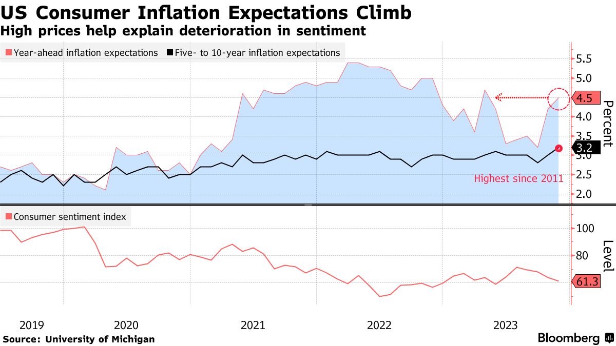 美国消费者对未来一年通胀预期进一步上升 - 彭博社