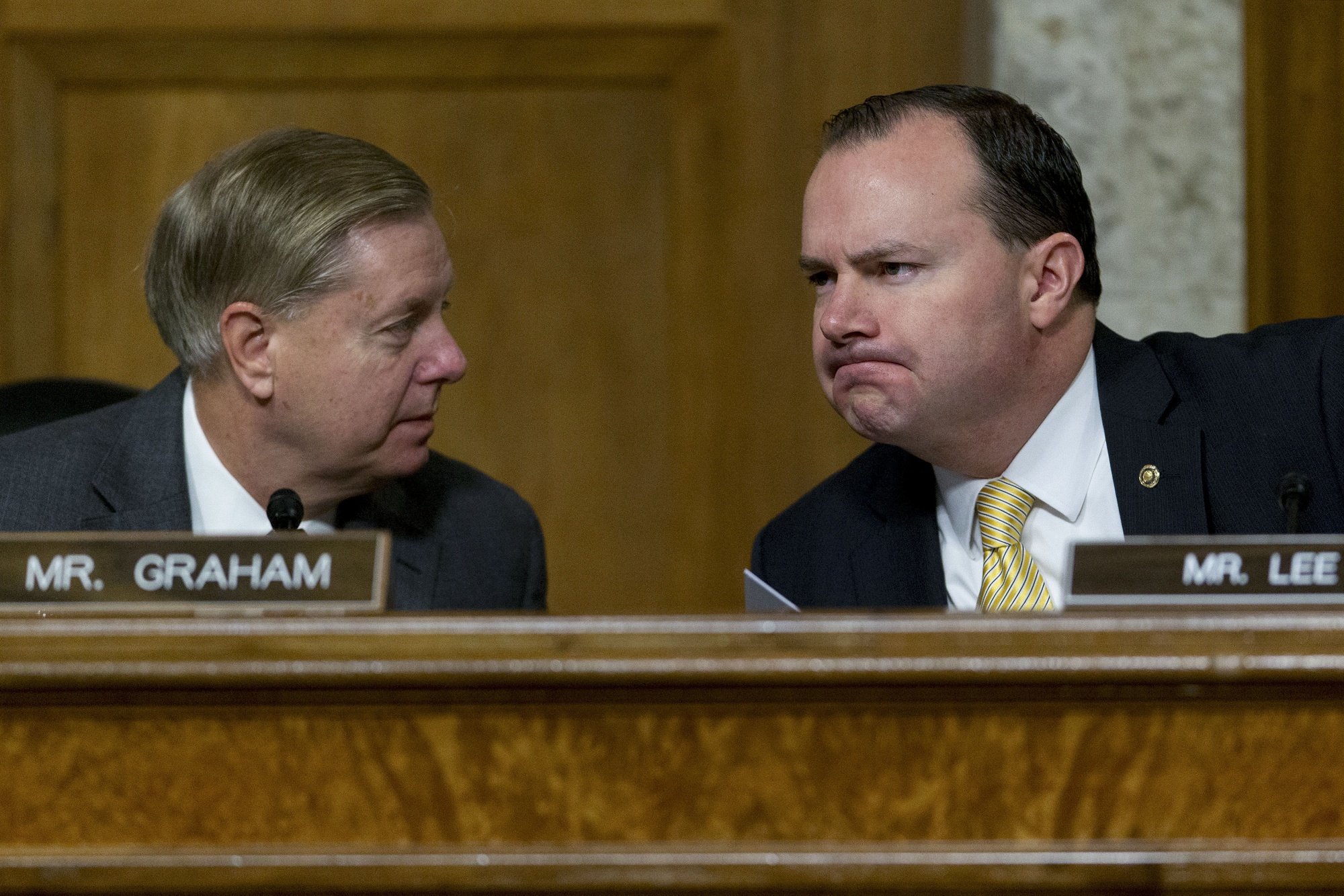 李在2015年平装版《我们失落的宪法》开头的作者注释写道:“迈克·李参议员是我们建国宪法原则的不懈倡导者。”然而,你已经可以在同一本书中看到这些原则正在解体。2015年,也就是下降到地狱的自动扶梯前一年,正在侵蚀共和党基础的病态现象就已经黑白印刷在那里。