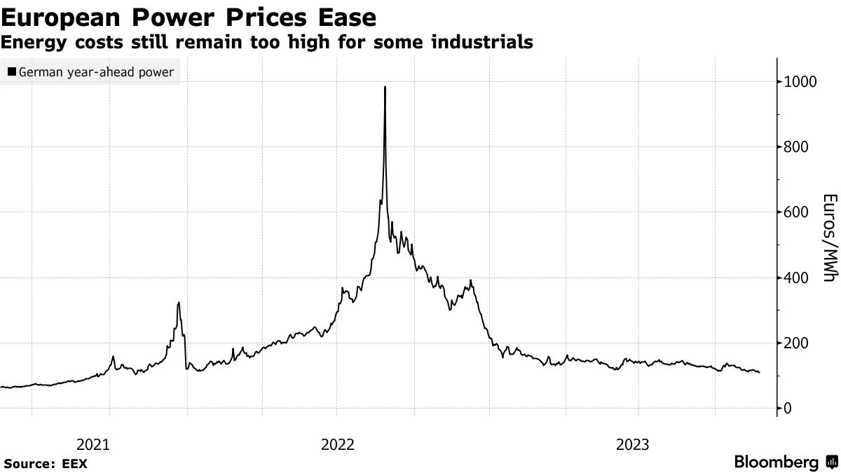 持续下跌的电力价格为欧洲摇摇欲坠的工业部门带来了一丝缓解,该部门在生产成本不堪重负的情况下发出了严峻的警告。飙升的电费已经迫使企业和家庭减少能源消耗,尤其是在通货膨胀在整个经济中蔓延。