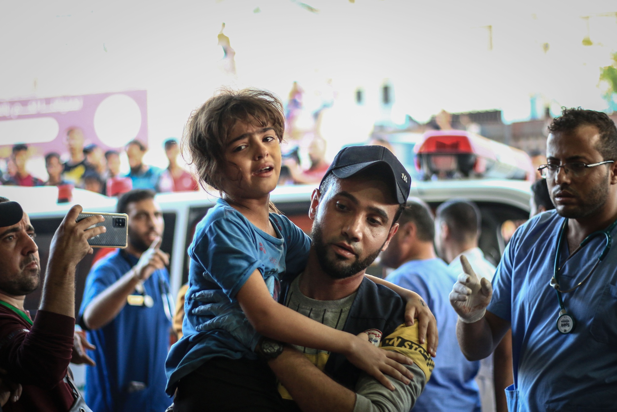 11月18日,以色列对加沙汗尤尼斯的一所房屋发动空袭,一名巴勒斯坦儿童被送往纳赛尔医院。摄影师:Ahmad Salem/Bloomberg### 全球必读
