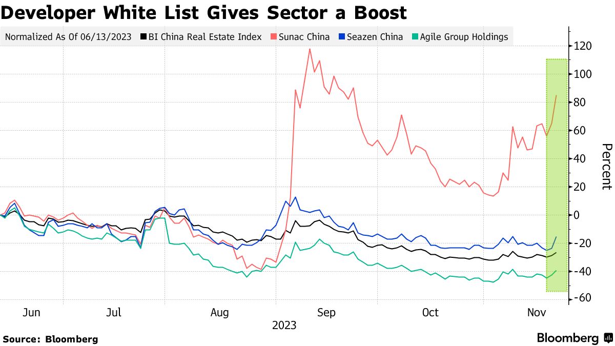 彭博社本周早些时候报道,中国正在拟定一份名单,指导金融机构在考虑通过贷款、债务和股权融资支持房地产行业时使用。资金的规模以及对债权人和股东的长期影响尚不清楚。