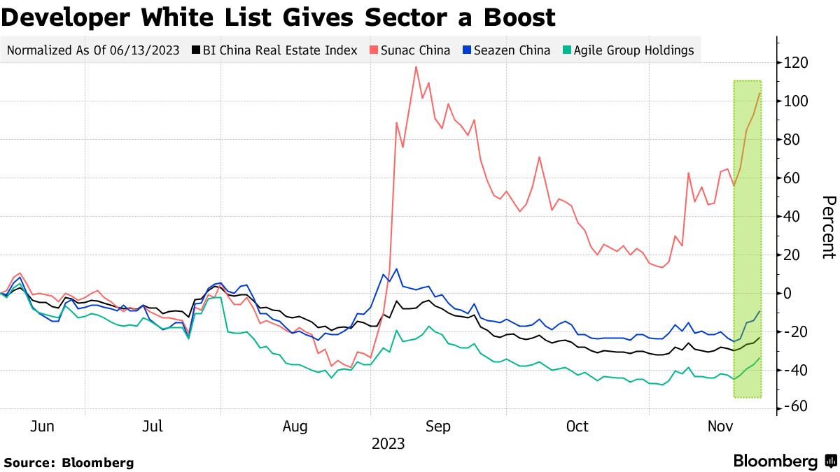 随着中国国家主席习近平加大对整体经济的支持,本周的举措表明加大了阻止房地产行业的下行螺旋对经济增长和金融稳定构成威胁的紧迫性。虽然开发商股票和债券已经从困境水平上升,但目前尚不清楚最新措施是否足以恢复信心。将更多负担转嫁给银行也存在风险。