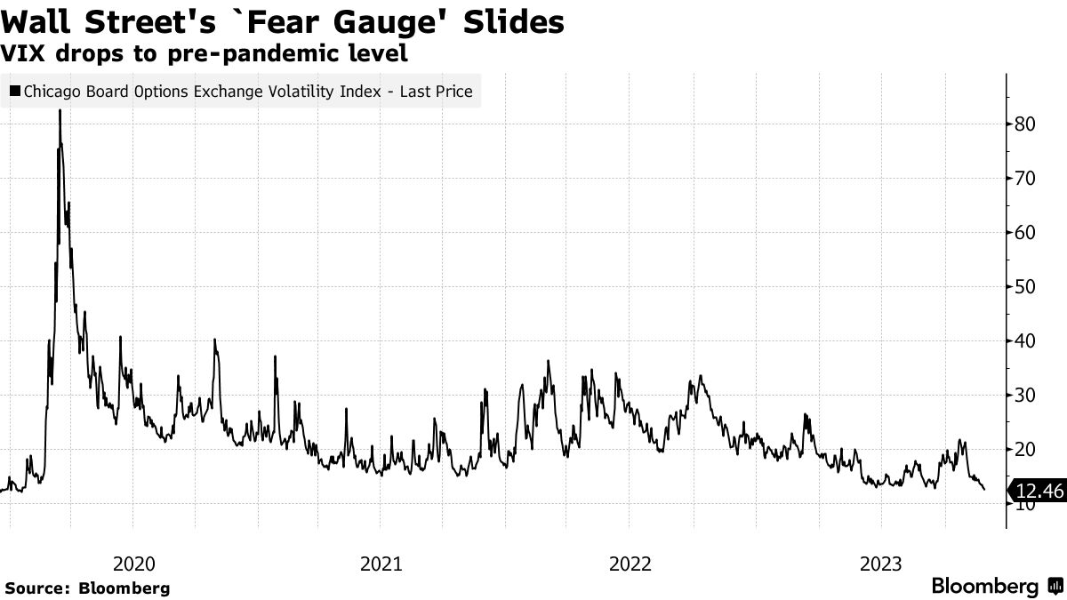 标普500指数在纽约时间下午1点收盘时几乎没有变化,同时创下了连续第四个交易周的涨势。华尔街的“恐慌指数”——VIX——下跌至12.46,为2020年1月以来最低。与此同时,与加密货币相关的股票上涨,因为比特币反弹。 英伟达公司因一则新闻报道而下跌,报道称该公司告知中国客户推迟了人工智能芯片的推出。 美国十年期国债收益率接近4.5%。