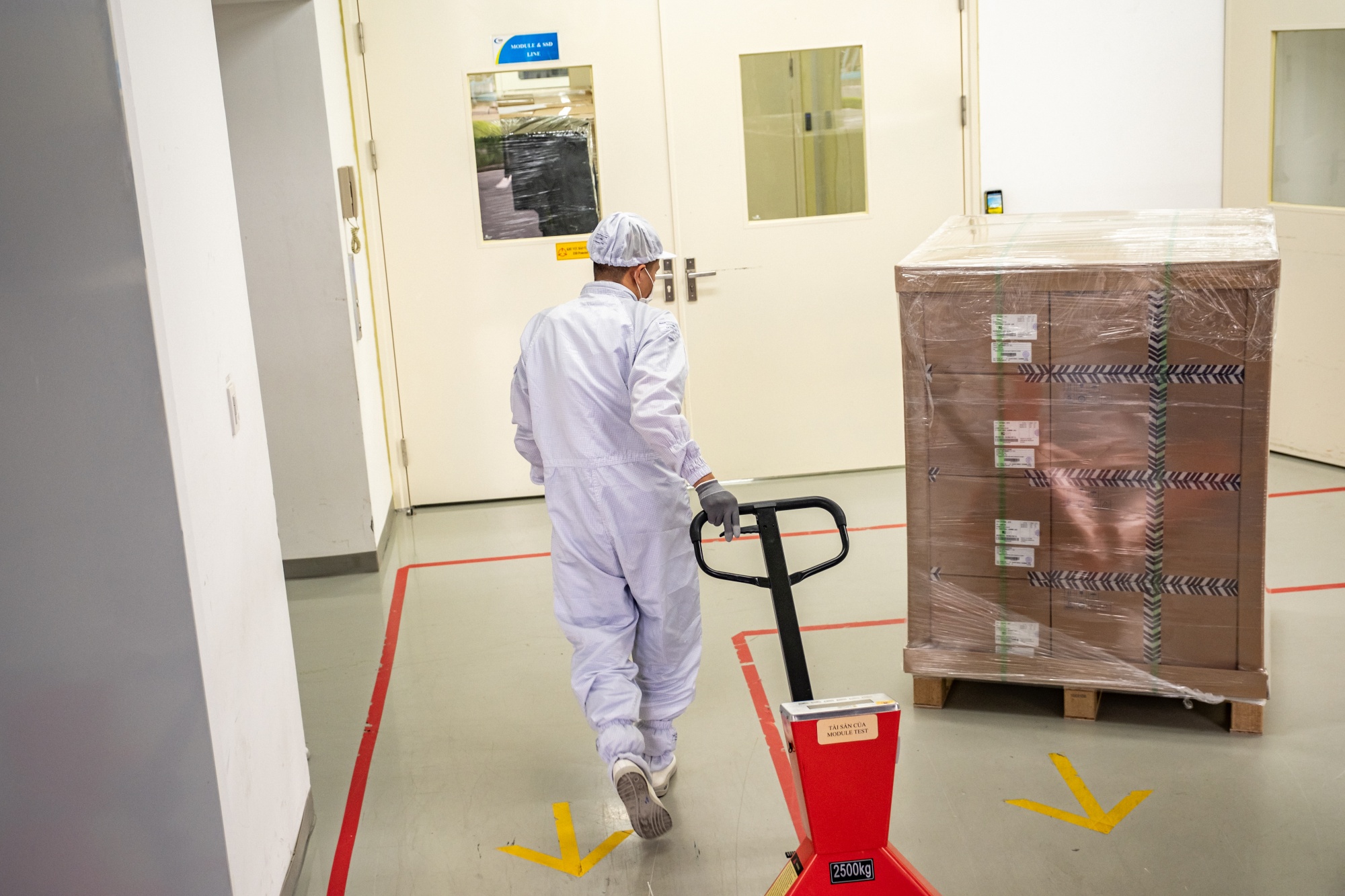 一名工人准备搬运一包芯片。摄影师:林·范/Bloomberg根据英特尔的数据,美国仅占全球3%的封装能力,现在正试图与中国竞争。杰富瑞预测,在未来18个月内,使用先进封装技术的芯片出货量将增加十倍,但如果这在智能手机中成为标准,这个数字可能会增加到100倍。拜登政府已经概述了一项 30亿美元的国家先进封装制造计划,到本十年末将建立多个大规模封装设施。