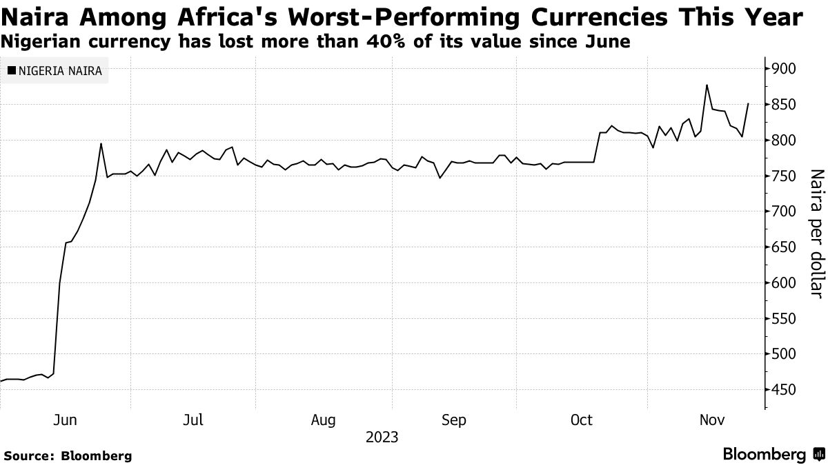 自6月以来,尼日利亚奈拉对美元贬值了约40%。
