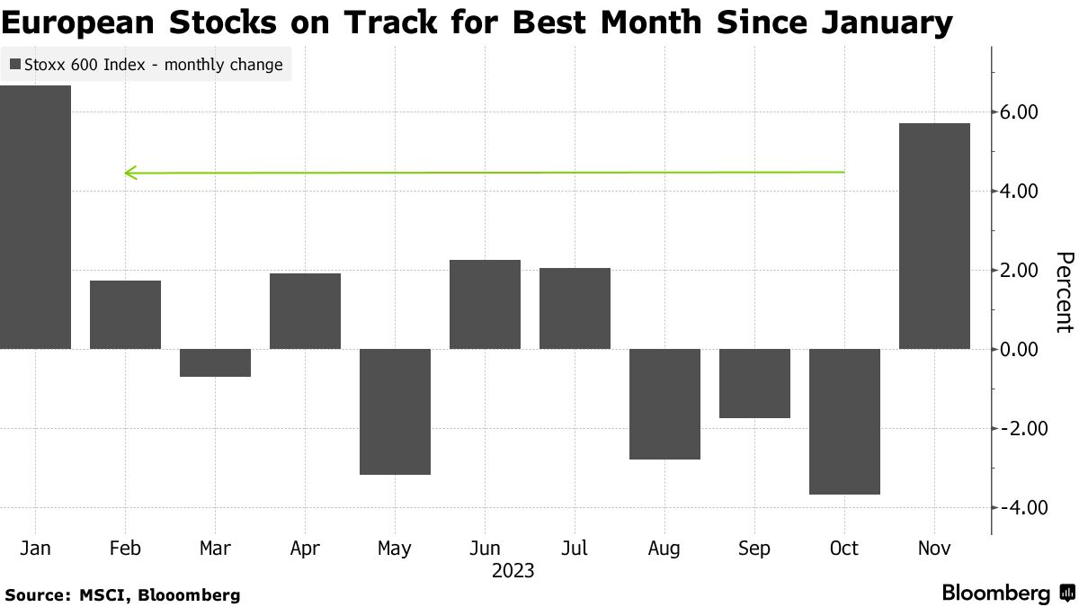 欧洲股市上涨,连续第二周增长,进一步增加了11月份的收益-彭博社