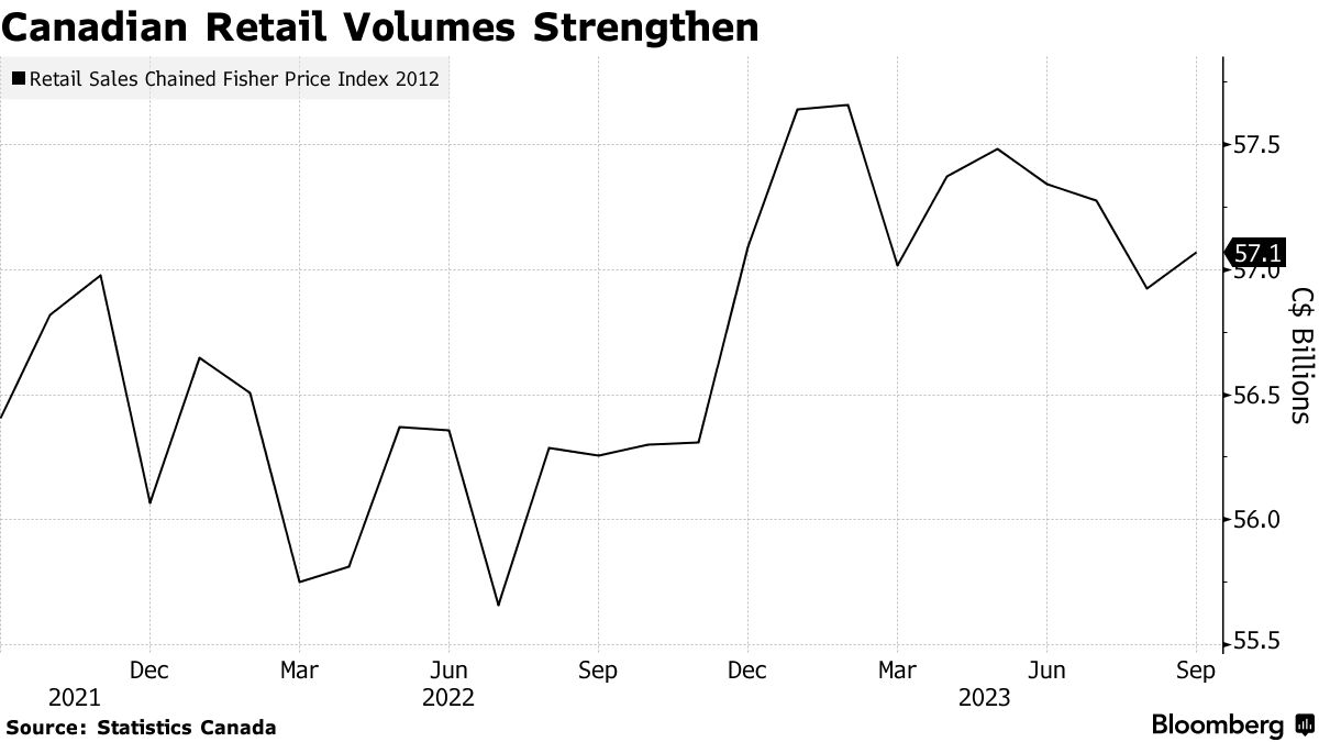 随着经济已经显示停滞迹象,加拿大央行可能会忽略需求可能会暂时增加的情况,将借贷成本保持在5%的水平,等待经济疲软对支出产生更大影响。考虑到人口增长创纪录,核心零售销售正在下降。决策者将于12月6日再次确定利率。