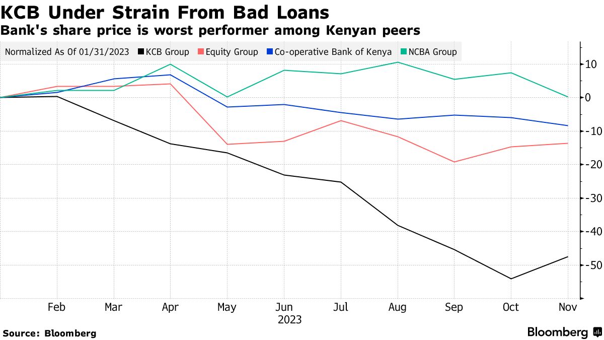 肯尼亚最大的银行KCB的股票因不良贷款的压力而落后于同行(KNCB)- 彭博社