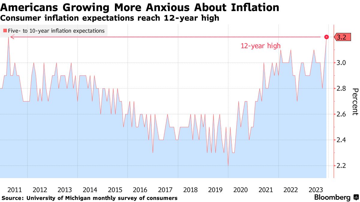 利率上升正在抑制消费者情绪,他们对长期通货膨胀预期目前处于2011年以来的最高水平,根据密歇根大学11月的一份报告。美国信用卡逾期率上升也预示着家庭面临困境。