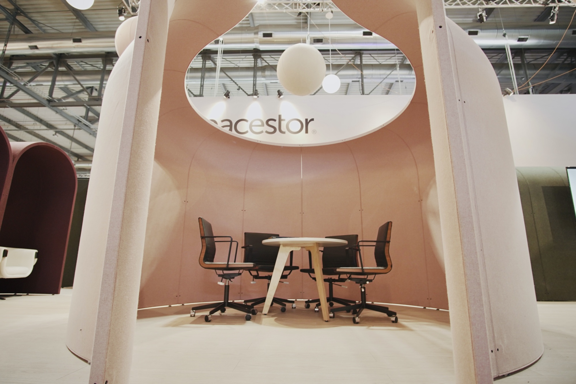 办公家具公司Spacetor设计的一间房间内的会议空间旨在为工作人员提供一些隐私和声学缓解。