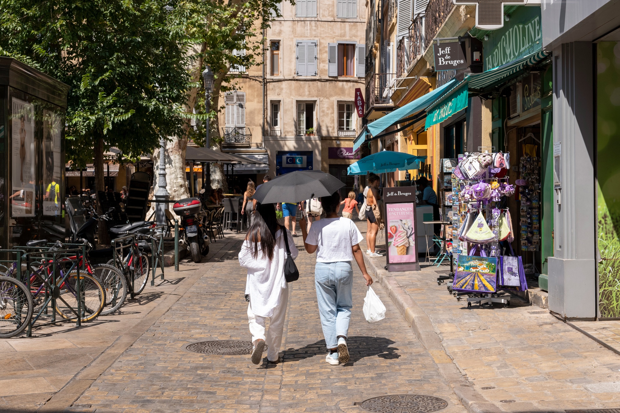 游客们在法国普罗旺斯艾克斯高温下遮阳。随着欧洲、日本和澳大利亚等地的高温,心脏健康可能面临越来越大的风险。
