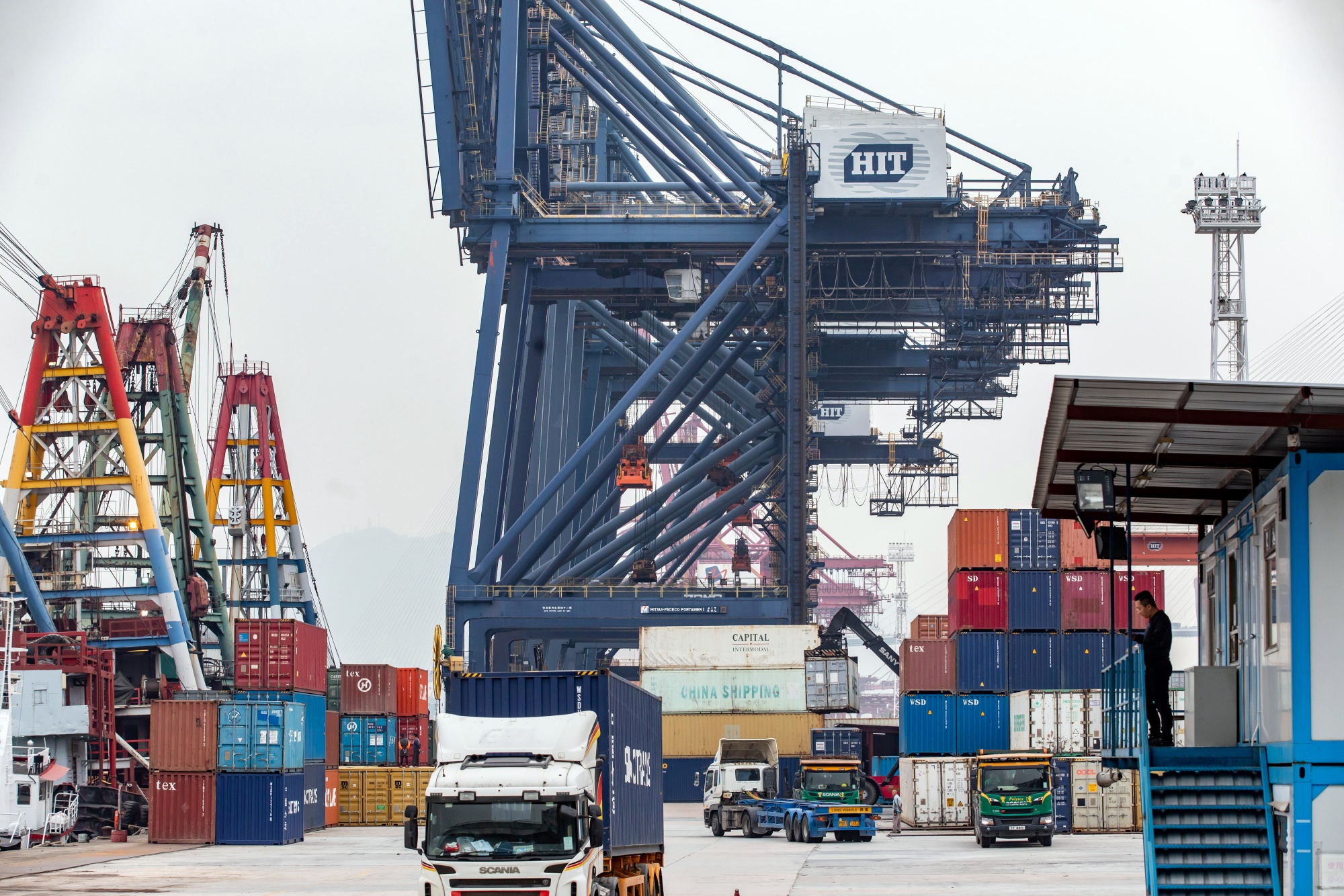 在香港的一个集装箱码头的运营。摄影师:Paul Yeung/Bloomberg香港上个月出口首次出现了一年多以来的增长,因为与中国内地的贸易改善,为这个金融中心的经济前景带来了一些乐观情绪。