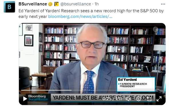 Yardeni表示,最近的数据显示,美国的通货膨胀可以在没有严重衰退的情况下得到缓解。而美国公司一直在宣称与中国的历史性“脱钩”,Yardeni表示,他对美国的乐观主要源自中国正在努力解决的通货紧缩问题。他说:“他们在经济上处于非常不稳定的局面。他们的价格正在下降,而我们从中国进口了很多货物。”