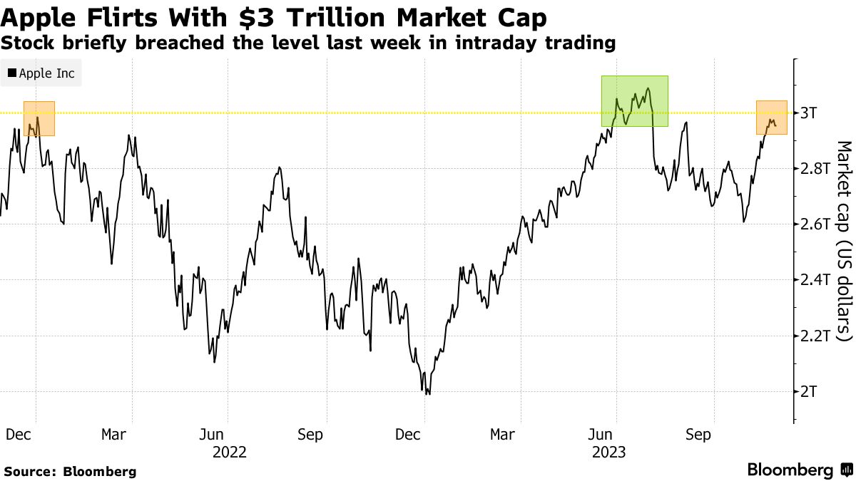 苹果公司股价在上周初延续上涨,一度突破了3万亿美元的市值。这家全球市值最高的公司是唯一一家实现了这一里程碑的上市公司。软件巨头微软公司一直在逼近这一难以企及的水平,今年股价上涨约57%,截至上一交易日市值达到2.8万亿美元。这两只股票在周一的早盘交易中波动不定。