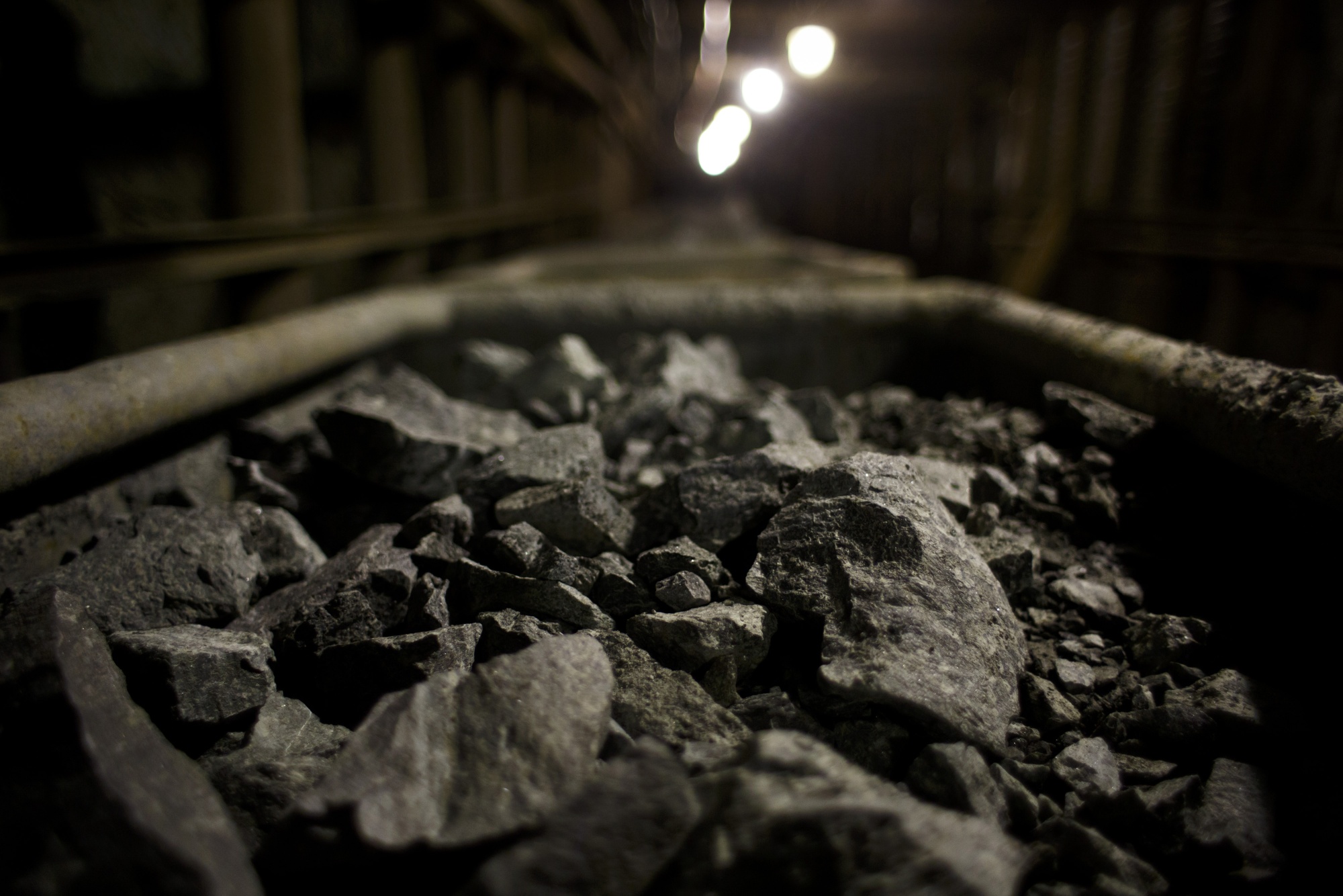 含铀矿石的岩石被装在铁路货车中。