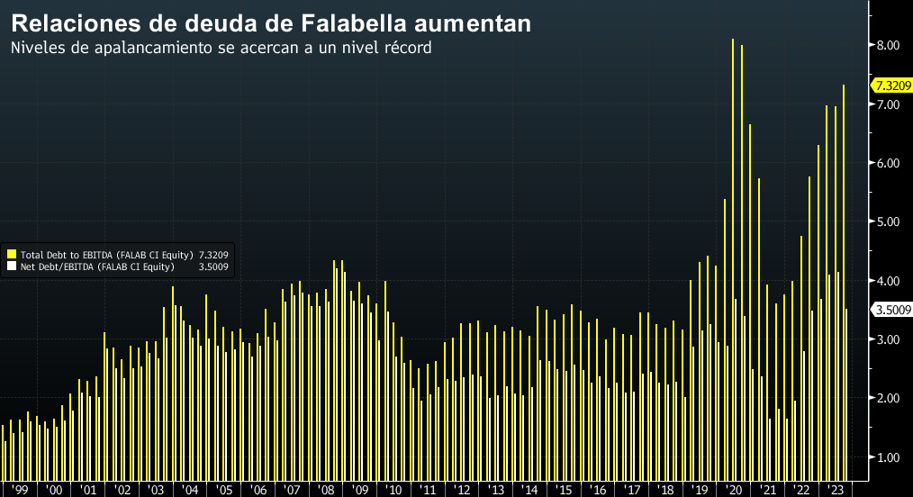 法拉贝拉的债务指标自2021年以来恶化。截至9月,总债务与息税折旧摊销前利润(EBITDA)的比率达到7.32倍,而其竞争对手森科苏德SA和购物中心运营商帕克阿劳科SA的比率分别为3.8和5.97。