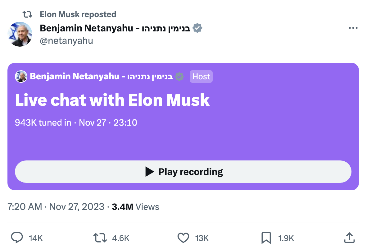 现在,如果我说错了,请纠正我,但在这个清单上,没有任何关于举办与一位因在其社交媒体平台上放大反犹太阴谋论而备受指责的美国亿万富翁进行现场交流的内容。对我来说,这听起来像是一种分心。然而我们却在这里: