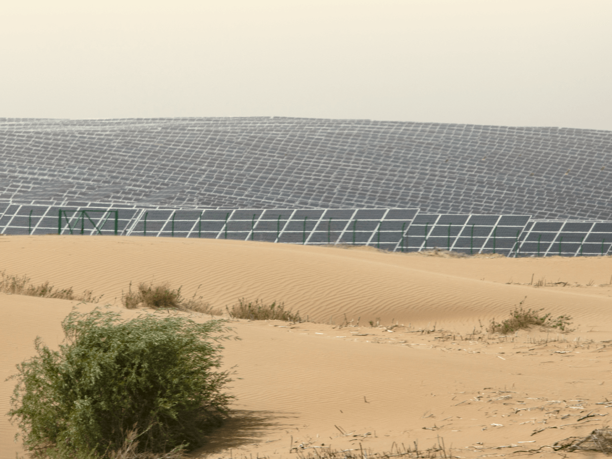数以百计的太阳能电池板一排排地覆盖着这片除此之外荒凉的内蒙古地区,距离北京约500公里(311英里)。它们是一个清洁能源项目的核心,相当于20个中央公园的规模,为110万户家庭提供足够的电力。