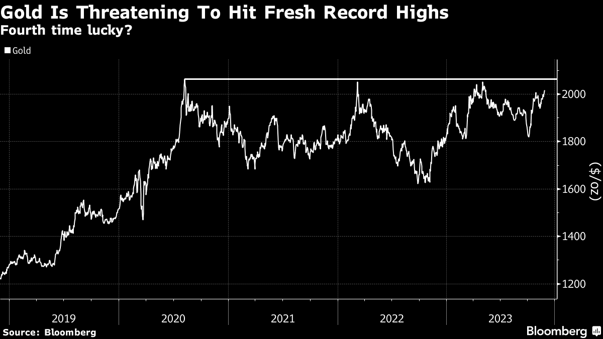 首先,黄金最近上涨的最明显原因是市场认为利率——特别是美国的利率——已经达到顶峰。尽管在这种情况下,升息并没有对黄金造成灾难性影响,但消除这一阻力肯定有所帮助。