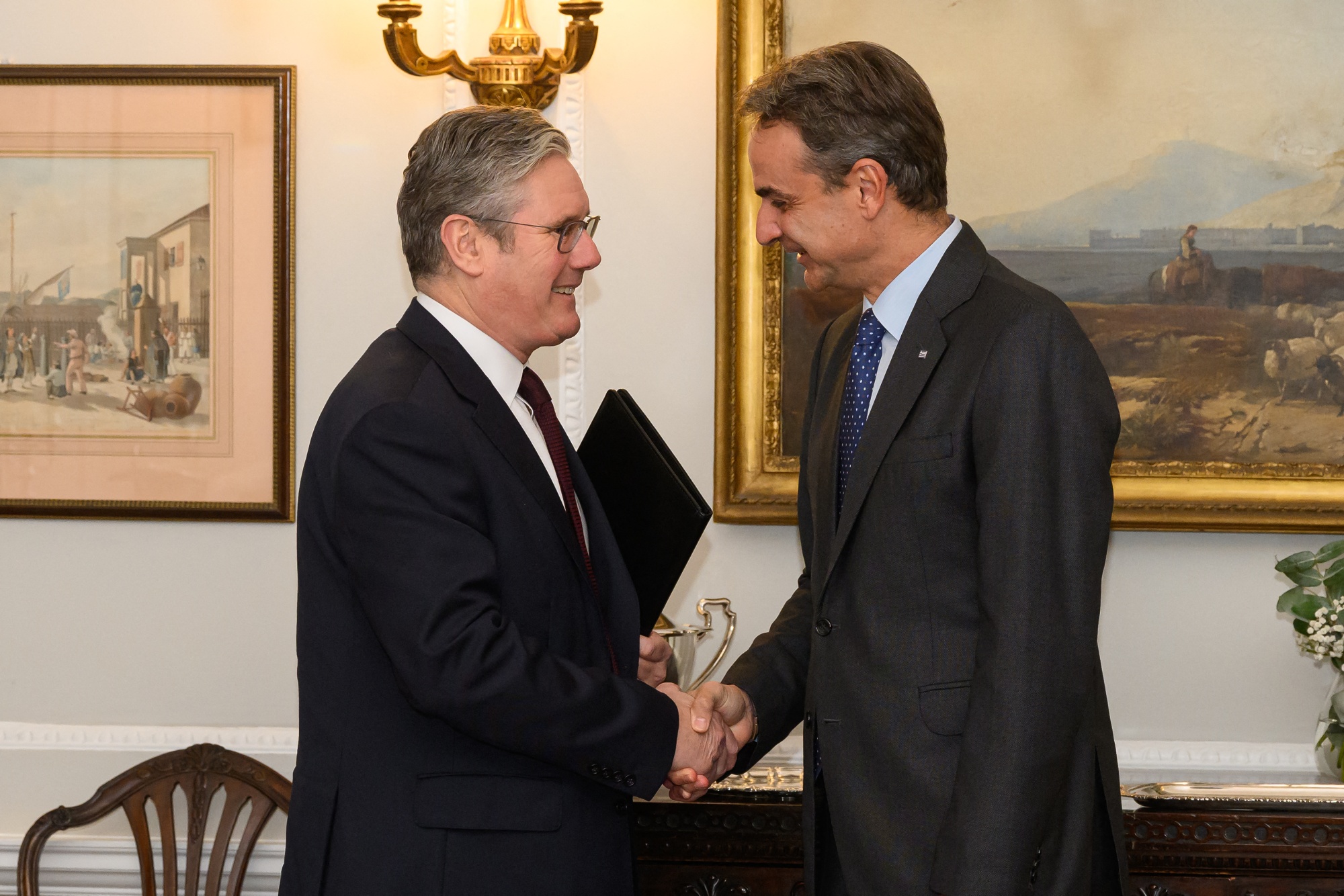 11月27日,基尔·斯塔默(左)在伦敦会见了基里亚科斯·米佐塔基斯。摄影师:利昂·尼尔/法新社/盖蒂图片社一位希腊高级官员表示,希腊总理的评论与他过去所说的并无不同,反映了该国在这一问题上的立场,他补充说,无论如何,这个问题并不关乎英国政府,而是关乎大英博物馆。