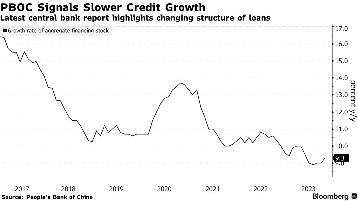 信贷总量的扩张——即信用的广义衡量——今年难以提振,因为其年增长率仍在历史低位的约9%左右。借款需求受到正在进行的房地产危机以及北京努力清理所谓的地方性隐性债务的影响,其中一些被替换为政府债券。