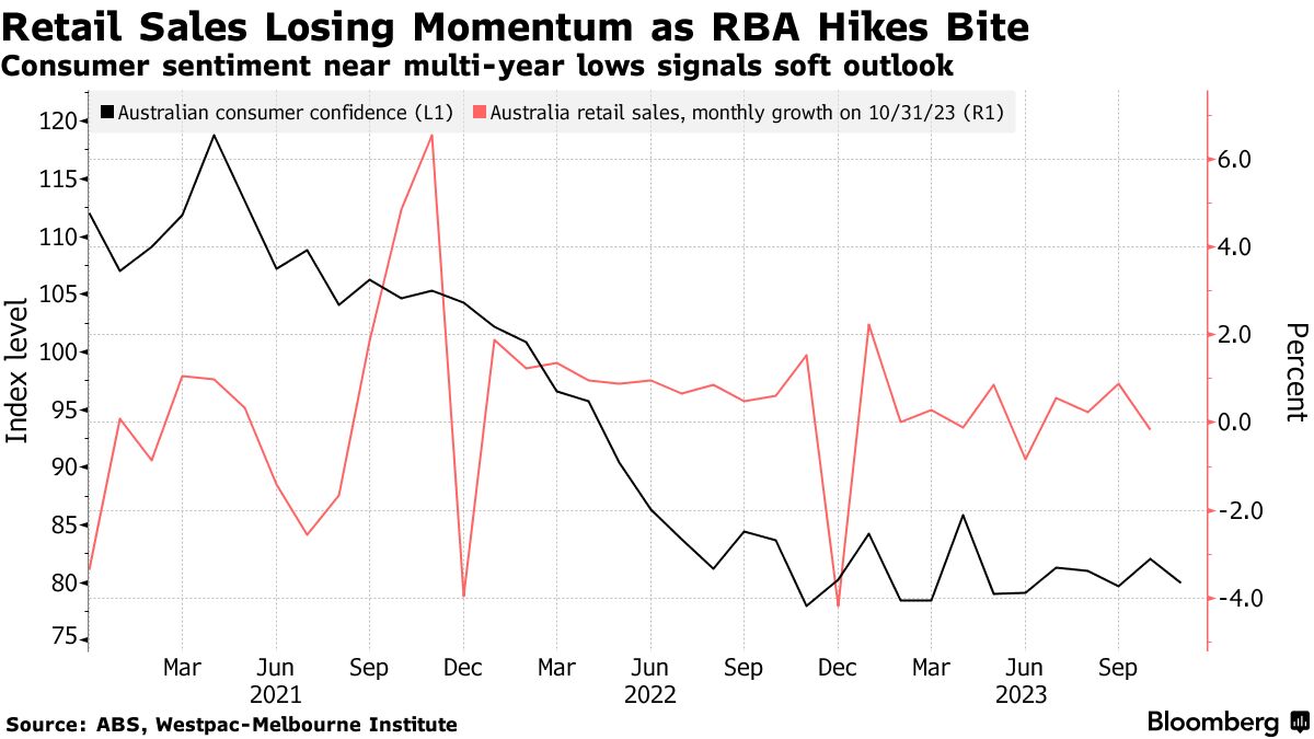 澳大利亚零售销售意外下降,利率带来影响-彭博社