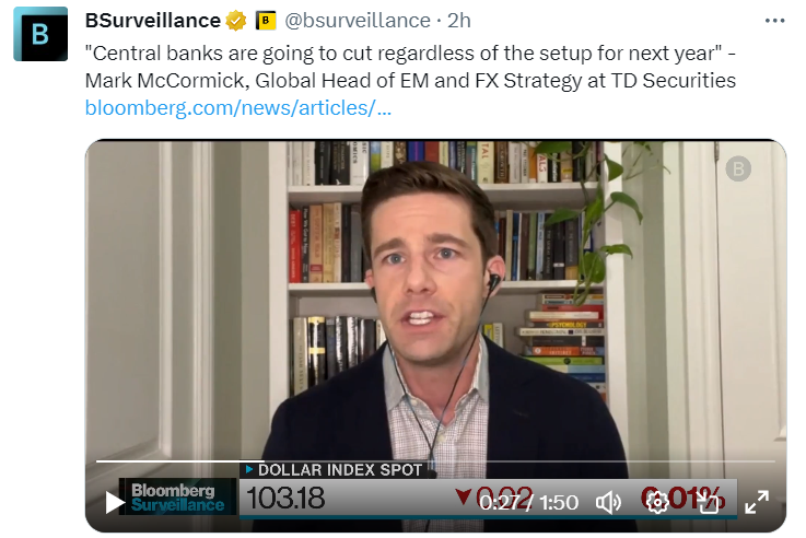与此同时,TD证券的Mark McCormick正在根据不同国家的房地产市场进行货币赌注。大多数国家的房地产市场并不是建立在30年的抵押贷款上,而是更短期的债务。这意味着较高利率的影响将更快地显现出来,削弱增长并迫使央行采取更积极的降息行动。