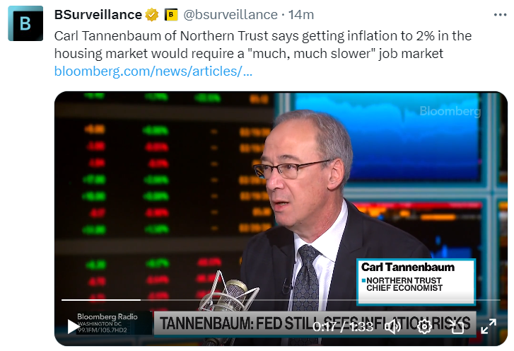 “这很关键。住房组成约占核心CPI的40%,核心PCE的30%左右,” Tannenbaum说道。“如果在这一类别中没有更低的通货膨胀,你就无法实现美联储的目标。”