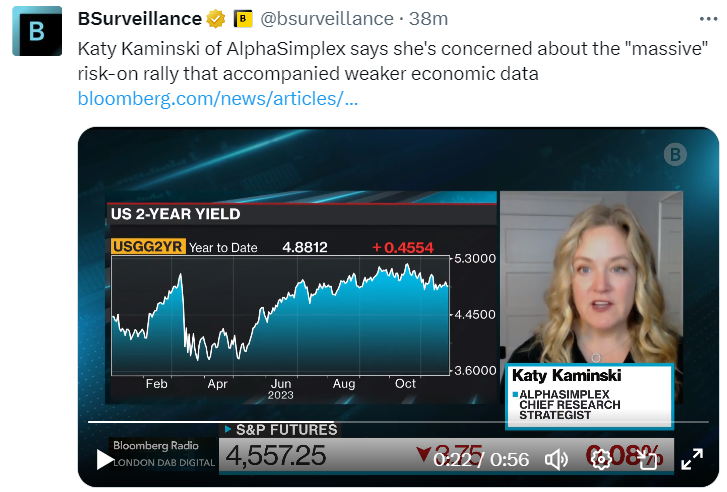 随着投资者开始对美联储放缓加息进行定价,卡明斯基回顾了2023年的一堂课,当时华尔街一直期待降息,结果却感到失望。展望2024年,她说:“我担心这可能比人们想象的时间更长。”
