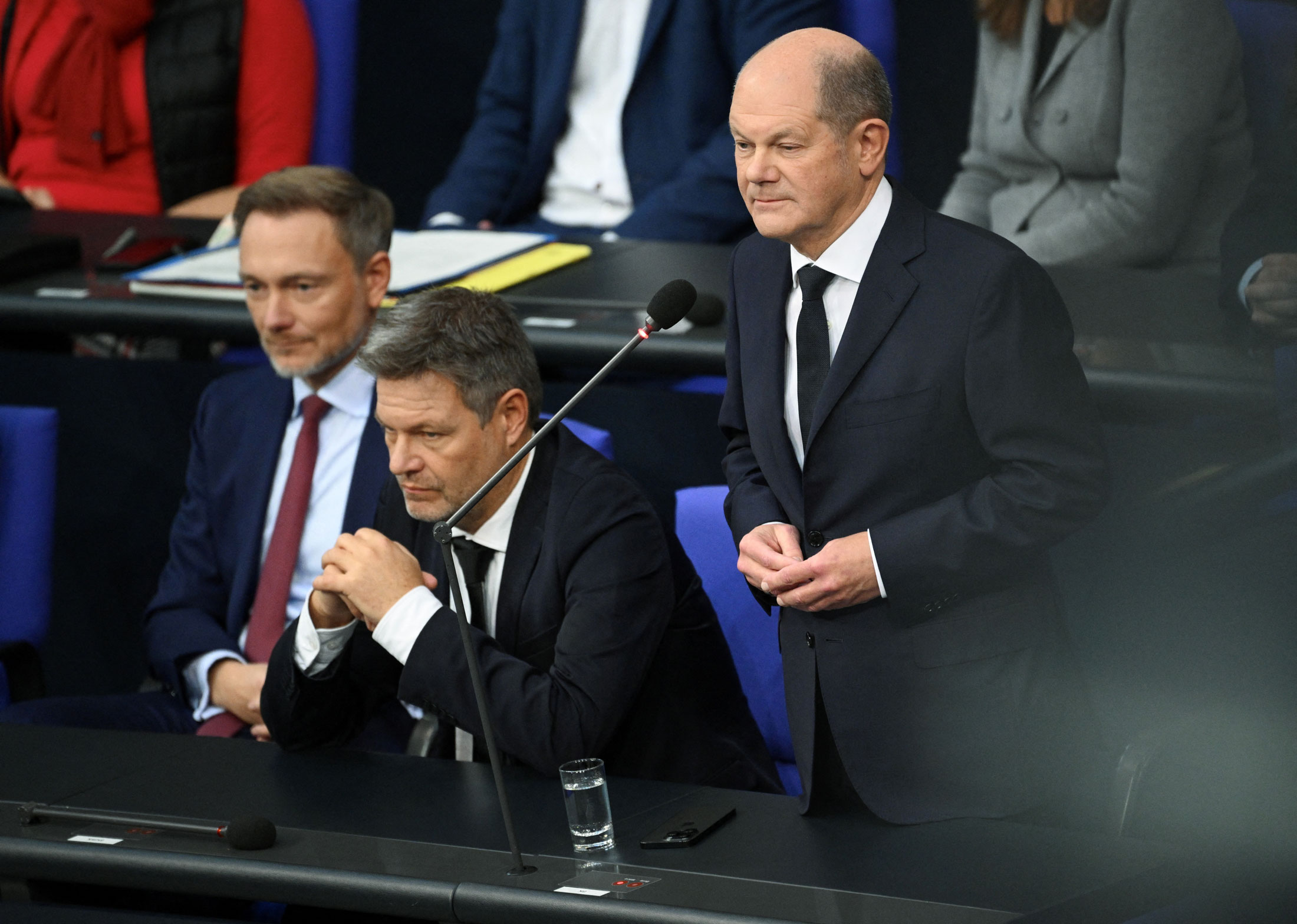 总理肖尔茨在11月15日柏林国会听证会上与财政部长克里斯蒂安·林德纳(左)和经济与气候部长罗伯特·哈贝克一同发言。摄影师:安妮格雷特·希尔瑟/路透社德国财政部长克里斯蒂安·林德纳是一位财政鹰派,他已经在将预算状况恢复正常的道路上取得了很大进展,但与以往相比,他也更加倚重特殊的非预算资金来满足联合政府伙伴对投资绿色项目和维护国家社会保障网的政策要求。