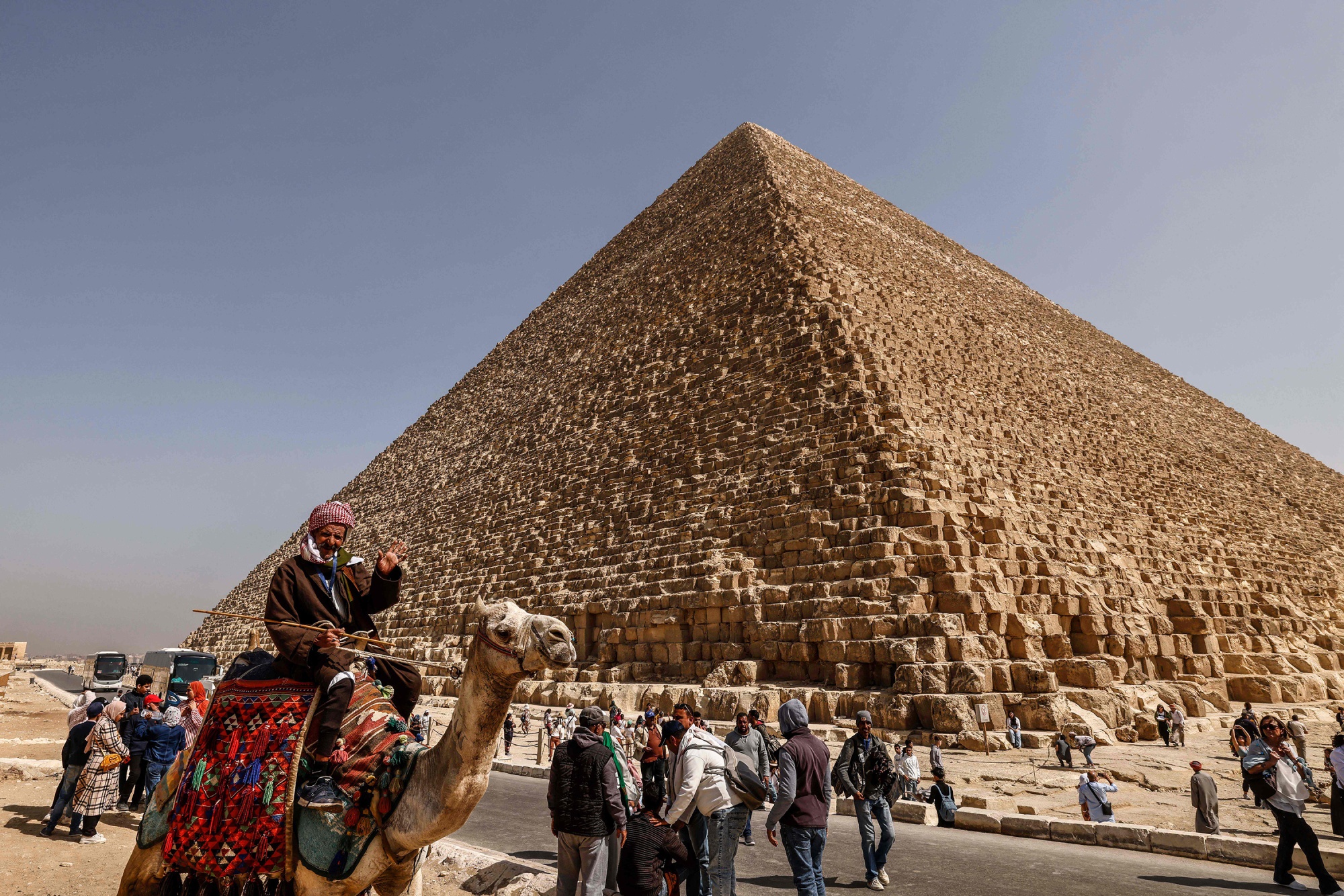 游客参观埃及开罗郊外的胡夫金字塔。摄影师:Khaled Desouki/AFP/Getty Images订阅**我们的中东新闻简报,并关注我们 @middleeast 了解该地区的新闻。