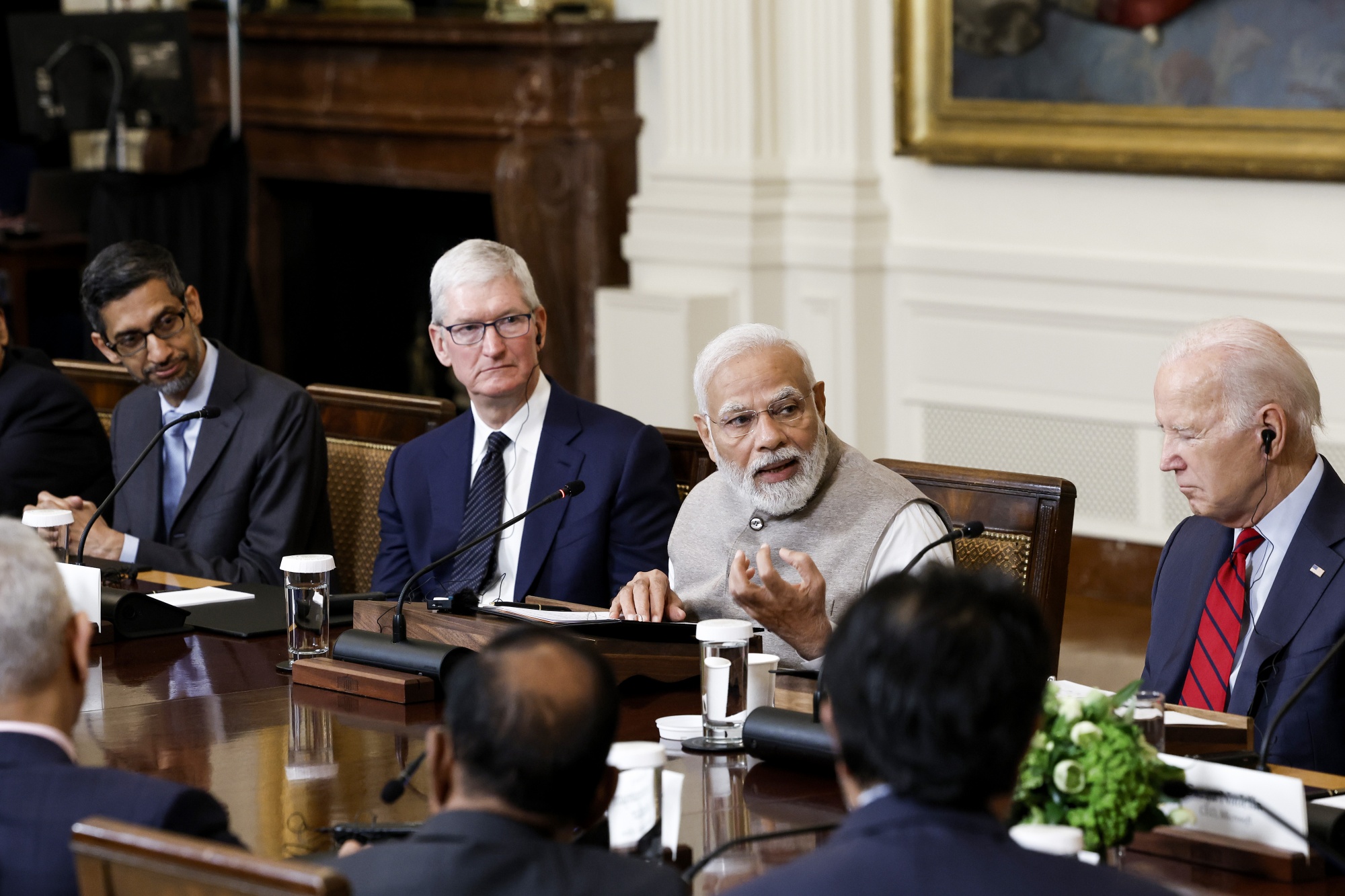 印度总理纳伦德拉·莫迪在华盛顿与美国和印度商界领袖举行圆桌会议时发表讲话,时间为6月23日。摄影师:Anna Moneymaker/Getty Images随着印度的技术制造业起飞,受过培训的毕业生有机会在IT服务以外的领域找到工作。莫迪政府正在吸引电子、智能手机和计算机制造商扩大在印度的业务和供应链,促使更多公司开始在那里组装设备。苹果公司和三星电子已经开始在该国生产更多产品,而美国超微半导体公司正在班加罗尔建立一个50万平方英尺的设施,这是其在全球最大的设计中心。