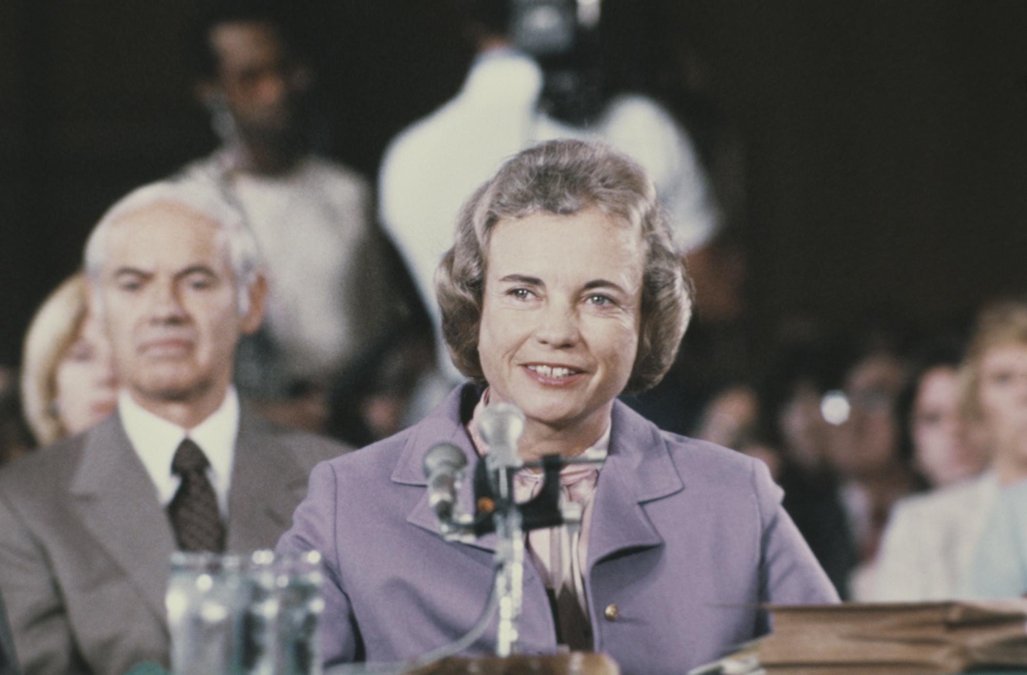 桑德拉·戴·奥康纳在1981年9月的确认听证会上作证。摄影师:Keystone/Getty Images她的参议院确认是一致通过的,在她任职法院的早期,奥康纳对1973年的堕胎合法化裁决罗伊诉韦德案持有强烈批评态度。