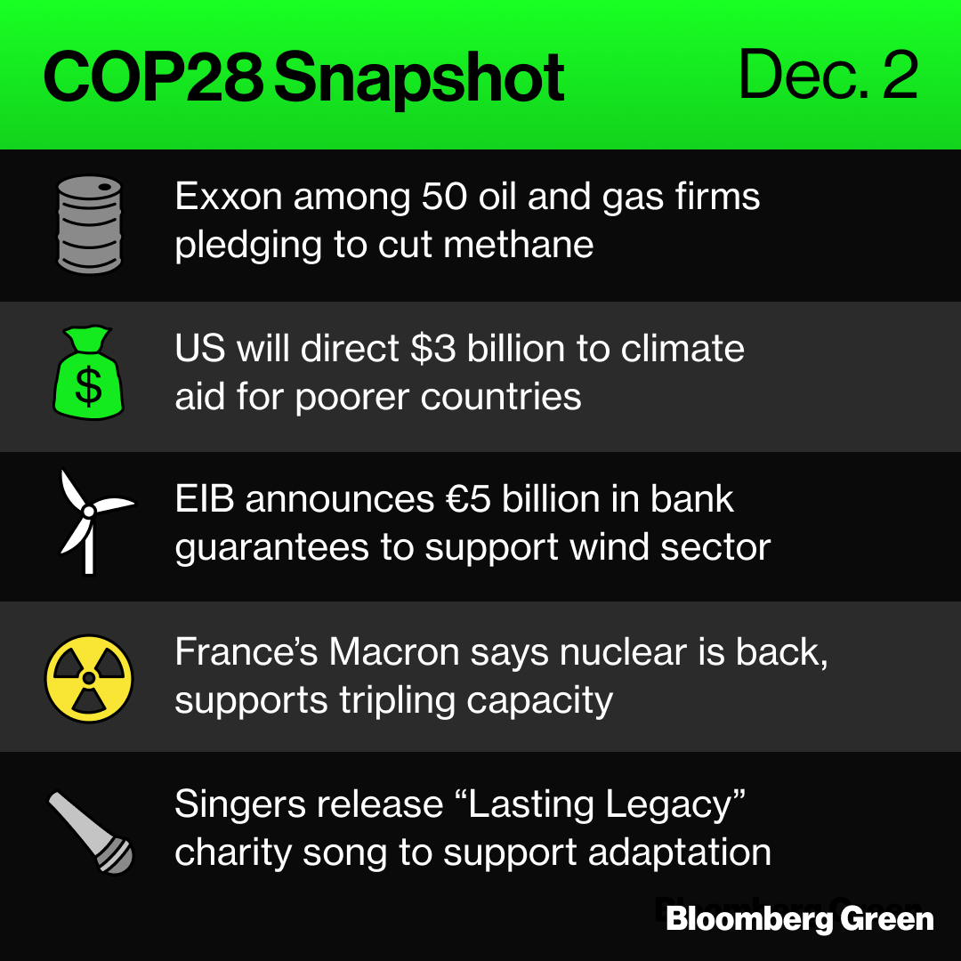 摄影师:Hollie Adams/Bloomberg 晚上好,迪拜。今天我们听到了关于气候融资、核能和新的石油天然气行业联盟减排的重大公告。您可以在这里了解详情。