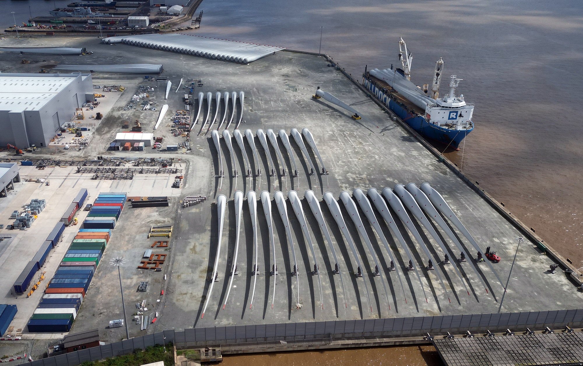 西门子Gamesa工厂在英国赫尔的风力涡轮机叶片。