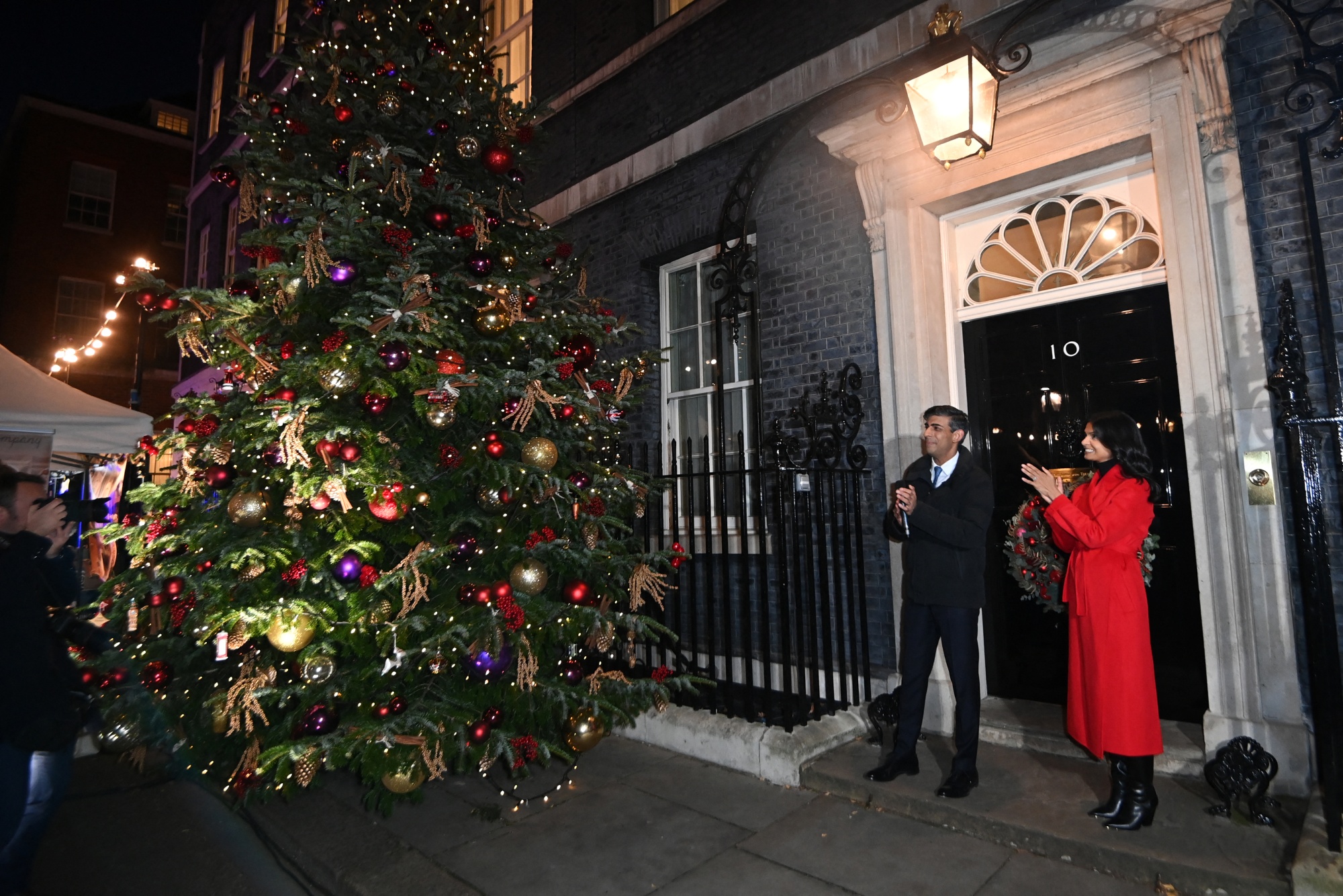 里希·苏纳克和他的妻子阿克沙塔·默蒂在伦敦唐宁街10号外点亮圣诞树灯,11月30日。摄影师:埃迪·穆赫兰/法新社/池/盖蒂图片社关注我们的@BloombergUK,并在Facebook上关注我们,还可以通过*《The Readout newsletter》*了解更多信息。