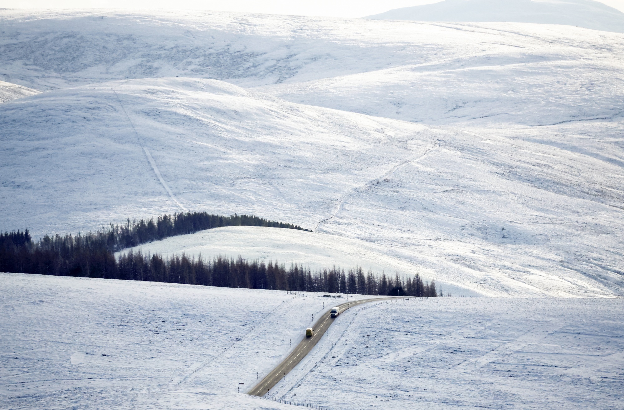 车辆在苏格兰Lecht附近的A939公路上行驶,12月1日,Lecht地区持续寒冷。